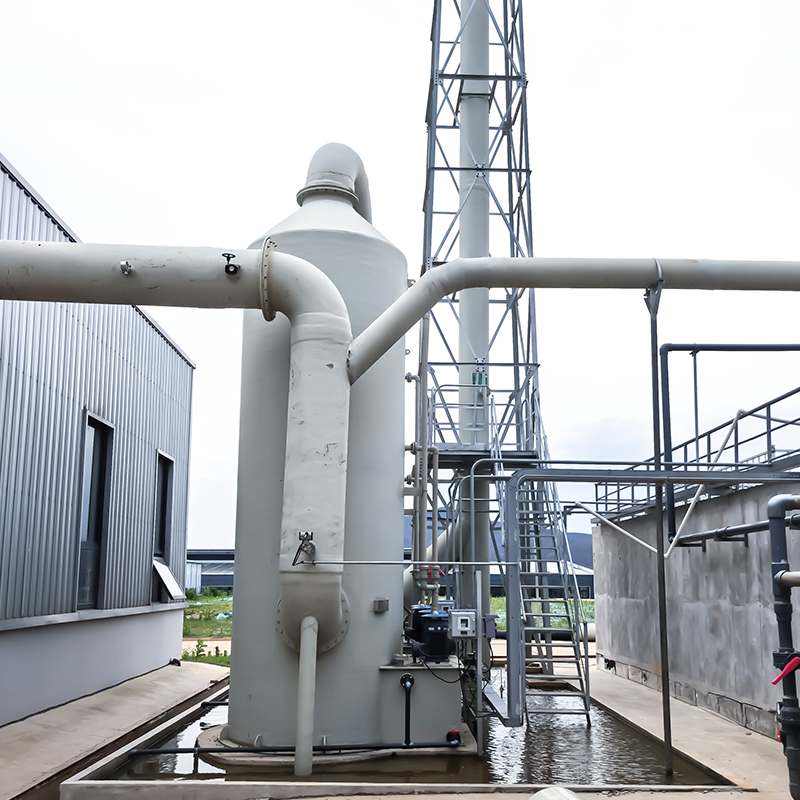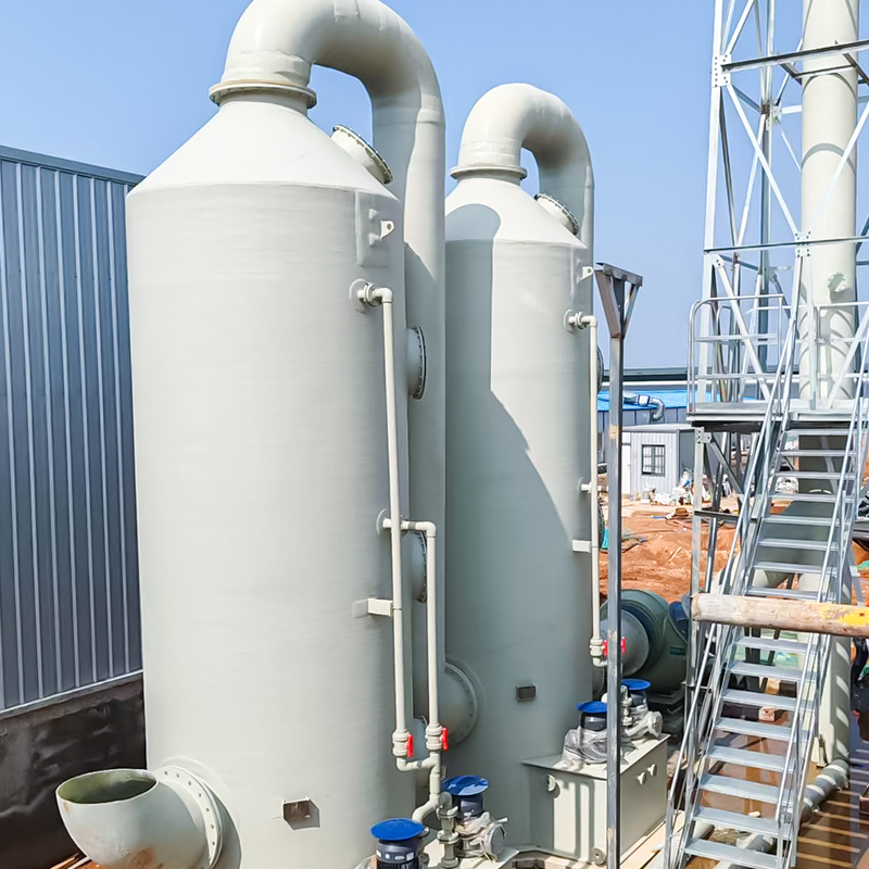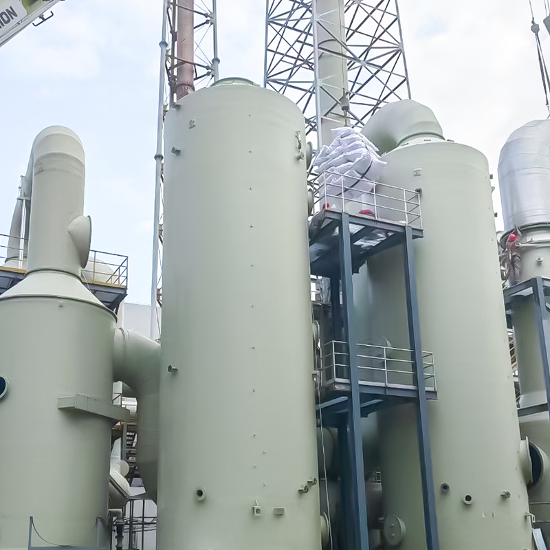 - Menara Penyerapan Air (Perlakuan Hidrogen Klorida): HCl mudah larut dalam air dan dapat langsung dihilangkan melalui penyerapan semprotan air. Ini cocok untuk gas limbah HCl konsentrasi tinggi (misalnya sintesis kimia, pengawetan logam). Setelah penyerapan, asam klorida encer yang dihasilkan dapat didaur ulang.